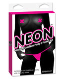 The Neon Vibrating Crotchless Panties and Pasties, from Pipedream, don't just look great, these are the funnest pair of panties you'll ever wear! Tucked away discreetly inside this soft-stretch crotchless G-String is a hidden micro bullet designed to rock your world! The crotchless opening allows you to have sex with your panties on while the whisper-quiet motor in the powerful micro bullet provides incredible stimulation where you want it most. Try them in the shower or spa and turn bath time into pleasure time! The matching self-adhesive x-shaped pasties are made for teasing and perfect any time you want to look and feel sexy! Phthalates free, waterproof, multispeed, batteries included.