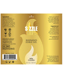 Make your partner blush with Sizzle Lips, the Edible Warming Gel that feels hot when you blow on it. Massage it into a small area of the body, blow on it to get warm and then kiss or lick it all off. The more you rub it in the warmer it feels. Sizzle Lips is an especially great tasting, glycerin-based gel with no after-taste. 4.2oz. Pina Colada flavor.