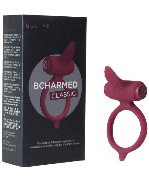 Enhance your favorite asset with the Bcharmed Classic massaging ring. Ideal for couples play, the Bcharmed Classic satisfies all with a textured pin-point precise tickler made of body-safe silicone with a powerful 5-function waterproof motor. Comfortable, soft and super flexible, the Bcharmed Classic is designed to fit all men perfectly. Use the simple click button to progress through all 5-functions, allowing you to easily adjust the power to your liking for customized erogenous stimulation. The Bcharmed Classic is waterproof and perfect for the bath or shower. The removable motor also makes cleanup a breeze, simply clean with soap and warm water and air or towel dry. Best used with a quality water-based lubricant to protect the smooth surface. Batteries included.