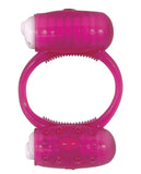 Twice the hummer! Humm Dinger Double Dinger is made of stretchy jelly. The erection enhancer fits around the base of the penis shaft. Two removable 1.125" x .5" bullets stimulate the testicles and clitoris. Each bullet has easy on-off control and lasts 40-plus minutes. Available in purple and magenta.