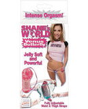 Strap it on and enjoy! Shane's World(TM) Venus Butterfly(TM) is jelly soft and powerful. The fluttering butterfly wings have a 3.75" wing span. Two AA size batteries, not included, provide the powerful vibrations. The ergonomically designed power pack has an easy to use multi-speed dial. One size fits most with the comfortable and fully adjustable waist and thigh straps. Let this butterfly tease and delight your erogenous zones!